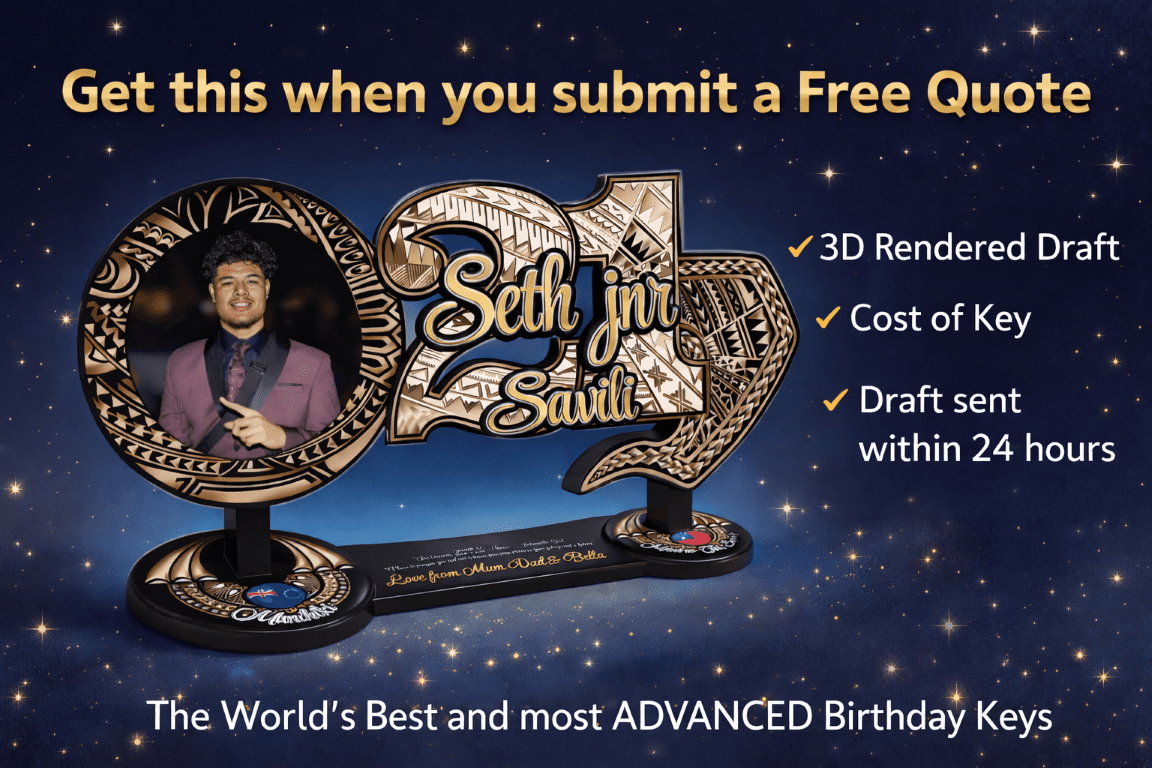 When purchasing a milestone birthday key or a custom plaque, having a 3D coloured draft before committing is a true game-changer. Why wait weeks for a pencil sketch and then feel pressured to understand what you've actually paid for? With WoodenWares, you receive a detailed draft within 24 hours, giving you a near-exact preview of the finished key—simply amazing!