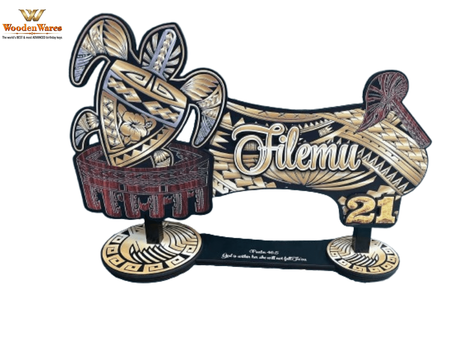The Samoan Kava Bowl. Another Exclusive Birthday Key only from WoodenWares. The fue and talking stick remain the same colours while the Bowl is kept in Timbergrain, the rest of the Key Colours can be changed.